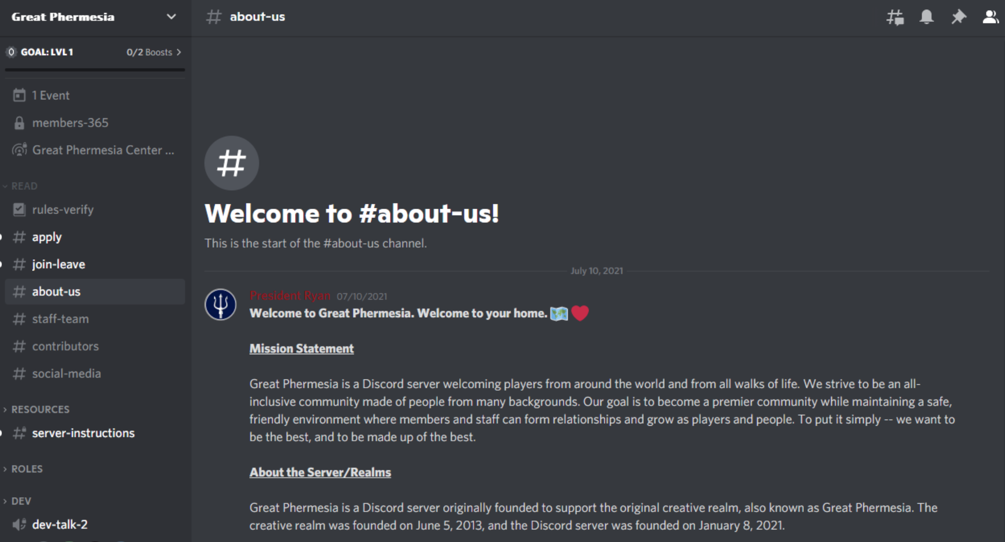 The Discord server is a place to hang out in the very heart of the Great Phermesia community. Engage in interesting discussions, make new friends from all over the world, and have a fun time!